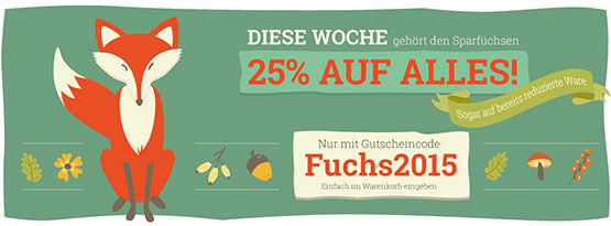 Der 25% Gutschein gilt auf das gesamte Sortiment, dieser lohnt sich jedoch nur, wenn der Bestellwert unter 10€ oder über 20€ liegt. Denn es gibt ebenfalls einen 5€ Gutschein, der für Bestellwerte zwischen 10€ und 20€ die bessere Wahl ist.